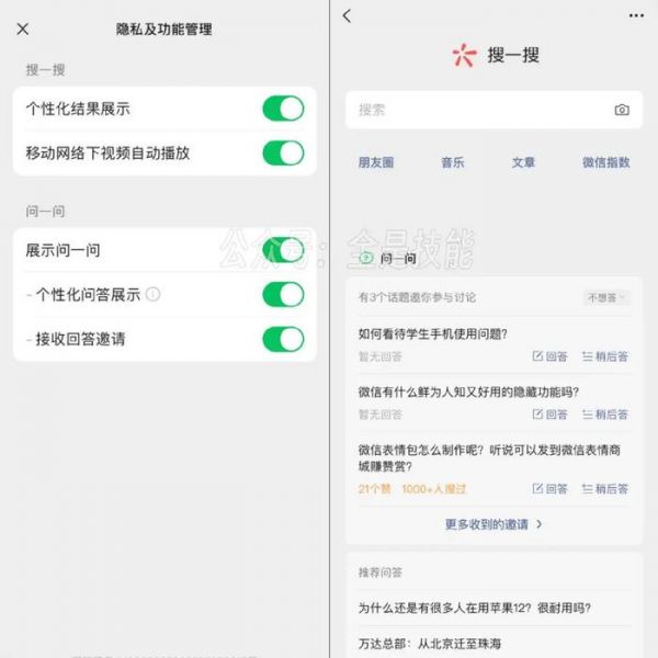 目前“问一问功能的展示开关”仅在iOS版微信上出现,安卓版微信中暂未发现。