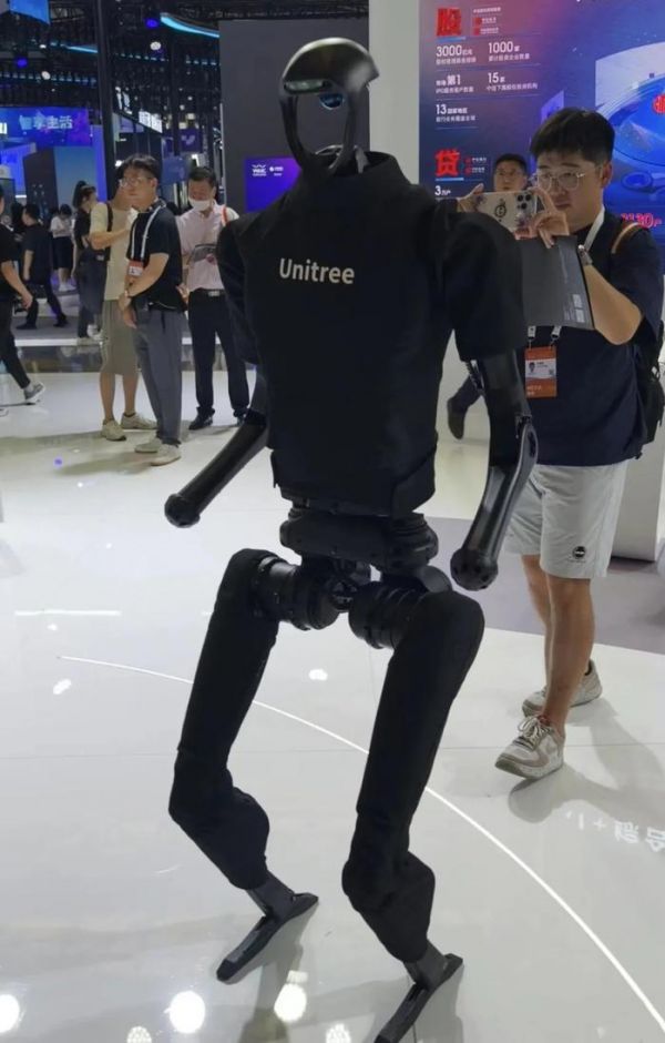 比如宇树科技,带来了自家首款通用人形机器人Unitree H1,工作人员称,这个身高一米八,体重47kg的“大块头”,已经实现在复杂地形和环境中自主行走和奔跑。