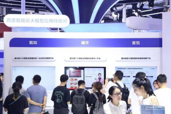 相较于去年展馆内“百模大战”的盛况,今年展台一个值得关注的现象是——参展的企业不再重点突出展示AI大模型,而是更加侧重于展出AI应用。