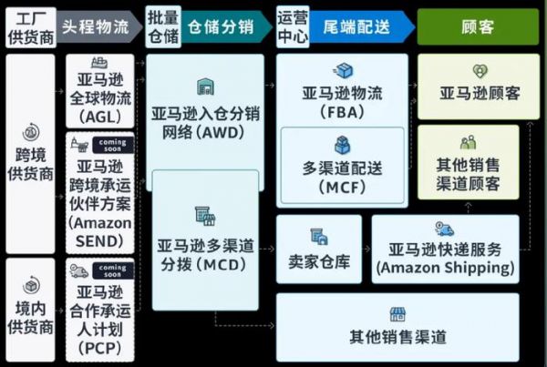 从AGL(全球物流)、龙舟计划、 AWD(入仓分销网络),再到MCD(多渠道分拨)都表现出亚马逊对“跨越国境的物流”有浓厚的兴趣。