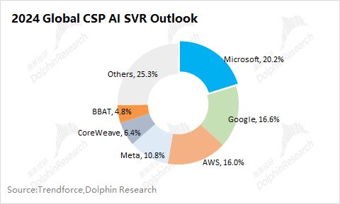 ②需求端:一部分市场机构将台积电CoWos产能进行倒推来测算需求,但海豚君认为应该关注“谁掏钱,谁买单”的最终消费者,更应该从AI服务器及互联网大厂的资本开支入手。
