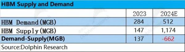 由于当前三大存储厂商仅对2023年及2024年的产能情况进行披露,海豚君主要先比较2023-2024年HBM的供需关系情况。