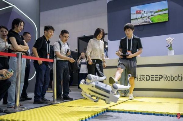 “来参展的机器人太多了,这个用脚展示的方式最吸睛了!”杭州云深处展台,工作人员钱晓宇将带来的四足机器人“Lite3机器狗”一脚踹飞,机器狗翻滚几圈后平稳落地。