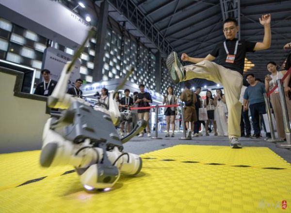 “一脚踹飞”后展现实力 国产机器人在世界人工智能大会展台大放异彩
