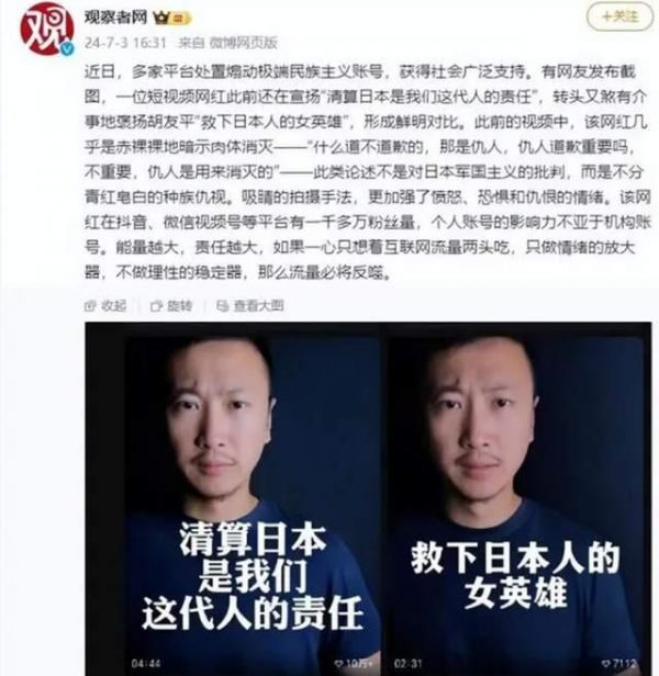 打着“爱国的旗号”,动不动对别人“喊打喊杀”,好像一切都是理所应当的,在互联网上鼓动网友们的仇恨。