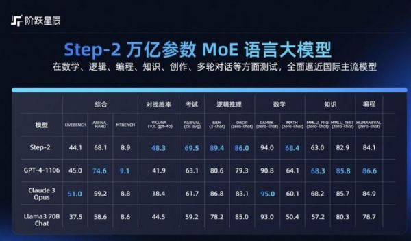 先来看Step-2 正式版,万亿参数,MoE架构,同时基于行业领先的系统能力大幅提升了训练效率,在数理逻辑、编程、世界知识、指令跟随等方面体感逼近GPT-4。