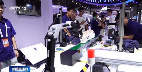 总台央视记者 张丛婧:这里是一条模拟产线,这些机器人能够精准抓取、转运、协作等不同分工的动作,完全解放了人力,那这么智能的机器人都是如何生产出来的?咱们去研发中心一探究竟!
