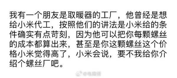 雷军多精明?商家称给小米做代工,成本核算到每颗螺丝。