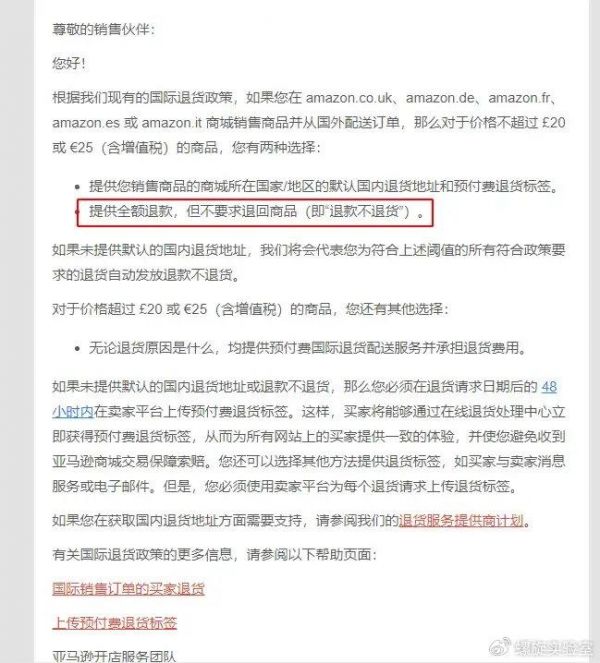事实上,早在2017年10月,亚马逊就在售后政策中加入了退款不退货服务。
