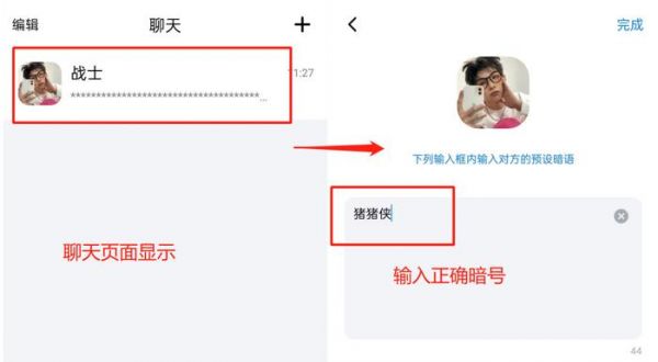 其次,加密聊天软件都会有加密功能,用来保护用户手机信息被别人偷看。蝙蝠的预设密信就是保护聊天内容被别人偷看,需要输入正确的密码才可以进去聊天框。