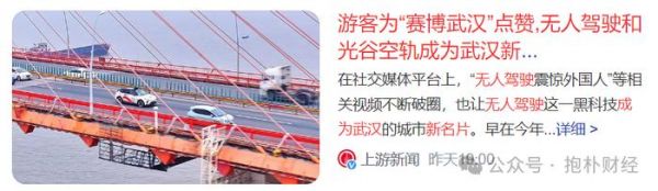 主流媒体的导向是很明显的。看看标题就知道,比如《游客为“赛博武汉”点赞,无人驾驶和光谷空轨成为武汉新名片》。总之就是很牛,很科技,很好。
