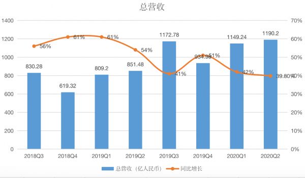 财报显示,该季度阿里总体营收为1190.2亿元,同比增长39.8%,去年同期为851.5亿元;净利润为707.5亿元,同比增长287.9%。