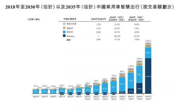 在如祺出行的规划中,公司的定位是一家 " 自动驾驶运营科技第一股 ",它的业务除了网约车服务外,还有 Robotaxi。Robotaxi 是出行行业的未来发展方向之一,拥有更广阔的市场前景。中金数据显示,预计到 2030 年,Robotaxi 全球市场规模超 2 万亿美元。