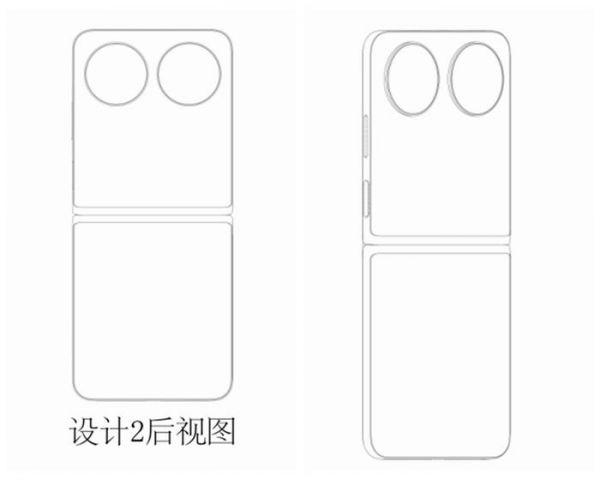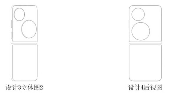 一种是后置配备了等大的双圆环,采用横向排列的摆放方式,相当于将现有的华为小折叠手机后置双圆环,由竖向摆放变为横向。