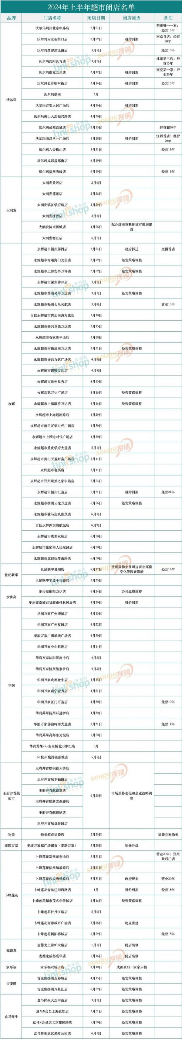 三年累计亏损近80亿元。上海证券交易所对公司2023年年度报告的信息披露监管工作函的回复公告中,永辉超市透露了目前面临的窘境,外部环境冲击以及部分居民消费习惯的改变对公司的经营业绩产生了较大影响,零售业态竞争激烈。另外,永辉超市也在公告中提到了同行们的现状:“例如同行业公司,高鑫零售也面临同样困境,2024财年(2023年4月至2024年3月)营业收入下降13.3%,净亏损为人民币16.1亿元。受困的也不止是永辉,闭店几乎已经是所有传统商超变革的首选。据《联商网》统计,今年上半年(1-6月),全国至少有131家商超门店关闭(上海城市超市和湖北富迪超市因经营困难,门店几乎全关,因此实际数量远超表格统计的131家)。