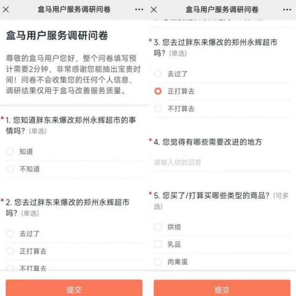 这不,4月底刚恢复会员制不久的盒马,看到爆改后的永辉开始欣欣向荣后,仿佛又发现了新的机遇。最近,它开始向部分用户发出调查问卷,字里行间透漏着胖东来,让不少客群误以为,盒马将会成为下一个爆改项目。