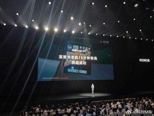 #折叠屏手机被洗衣机洗了怎么办# 好家伙,荣耀是真狠啊,今天的荣耀发布会现场上,赵明直接将荣耀Magic V3扔进了洗衣机!最重要的是荣耀Magic V3依旧完好无损,直板机做防水还是很容易做得,折叠屏做防水技术就会更困难一些,看的出来荣耀对自家折叠的防水相当自信,荣耀Magic V3给我们带来了极致的轻薄同时,还给我们带来了超强的防水体验,荣耀Magic V3是真的强[打call]
