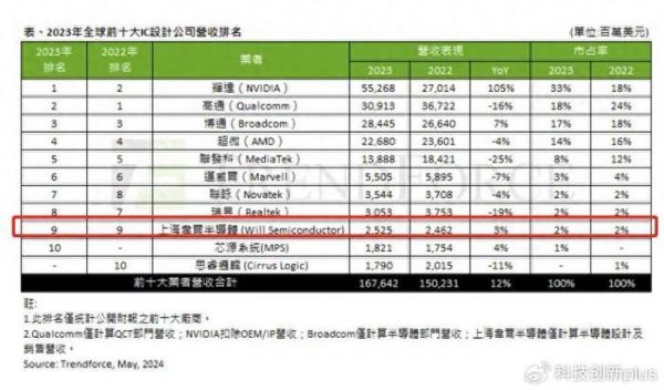 韦尔股份,也许很多不熟悉,但大家要清楚的是,2023年全球10大IC设计企业排名,中国大陆仅一家企业上榜,那就是韦尔股份,还排在全球第9名。