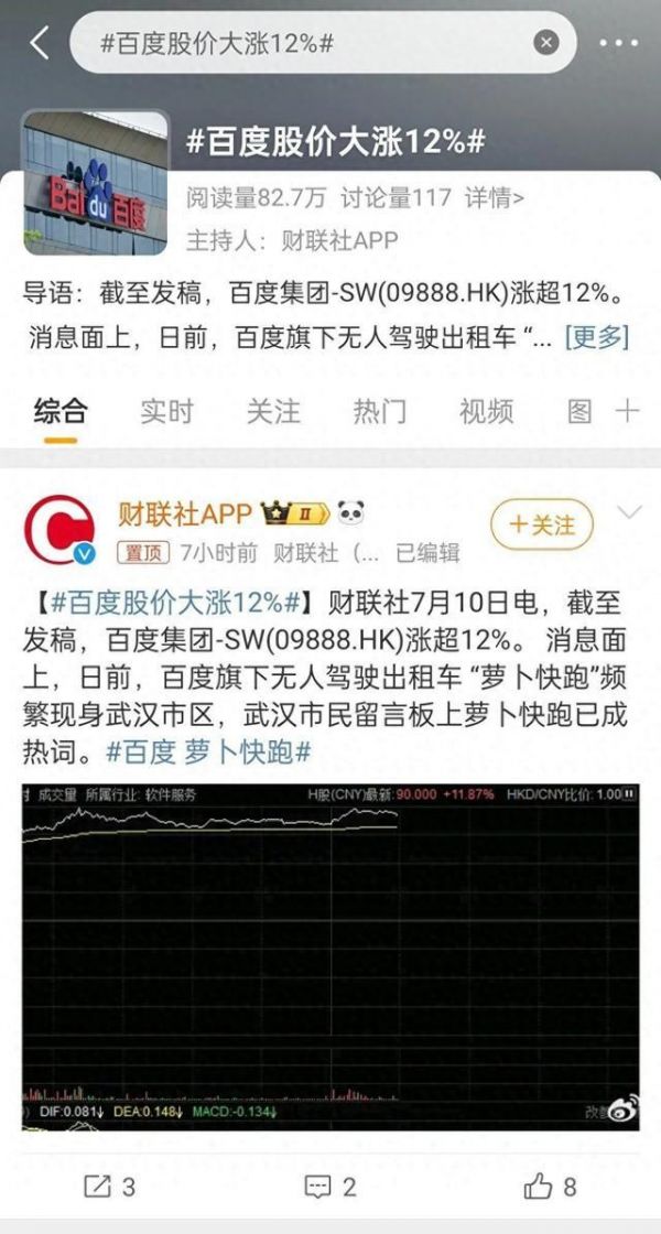最近,百度旗下的“萝卜快跑”频频登上热搜,7月10日因订单暴涨致百度集团股价上涨超10%。