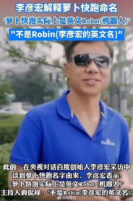 不是Robin!李彦宏解释萝卜快跑命名:萝卜快跑实际上是英文 Robot。