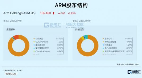 ARM的持股结构中,软银占据了88.7%。加上去年9月才上市,目前流通盘非常低,占总股本的比例约12%。