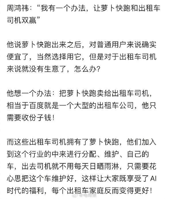 把萝卜快跑卖给出租车司机,周鸿祎想出的这个双赢办法,你觉得怎么样?