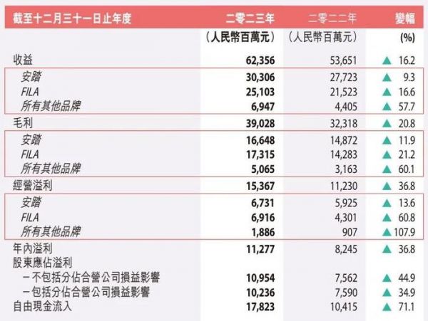 图源:安踏2023年财报 尽管此举有助于提高始祖鸟、萨洛蒙等高端户外产品的销量,但过分向市场让利,也严重削弱了安踏高端品牌的盈利能力。财报显示,2023年,安踏所有其他品牌的营业利润率为27.1%,比FILA品牌低0.5个百分点。