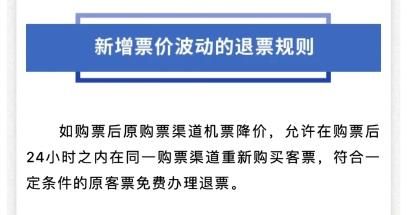 “花椰菜”提到的票价波动的退票规则,在东航微信公众号里今年1月公布的《关于调整东航客票退改规则公告》对此条规则的解释为,如购票后原购票渠道机票降价,允许在购票后24小时之内在同一购票渠道重新购买客票,符合一定条件的原客票免费办理退票。除此之外未做更多解释。