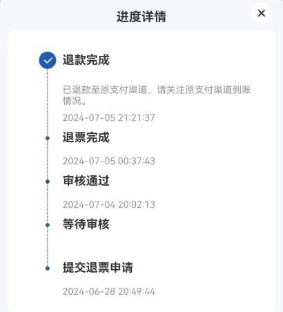 买完后,她把价格高的那份订单取消值机。6月28日,行程结束回家一天后,她打电话给东航,“上午给东航打了电话,下午回电让我先在App申请,要写一个工单号,说是审核也需要时间,先提交申请。7月4日,审核通过,7月5日钱款到账。虽然审核时间有点长,但到账还是挺快的。”