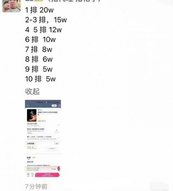 在粉丝中流传的TFBOYS十周年演唱会前排票黄牛价格图/图源:网络本应做好票务管理,防范黄牛的大麦,难免让人觉得“失职”。
