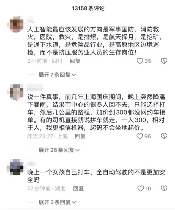 反对无人化的网友,理由也很充分——人要吃饭!