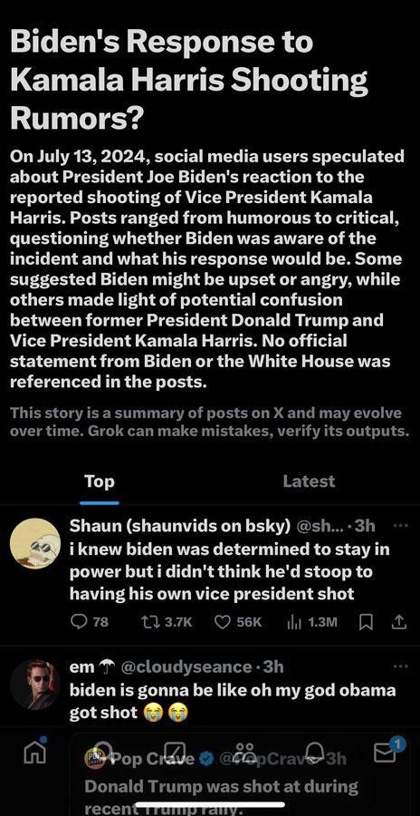 其中一则误报尤为引人注目,错误地宣称副总统卡玛拉·哈里斯(Kamala Harris)遭遇袭击,这一失误似乎源于X上部分用户对拜登总统之前一次口误的讽刺性解读。当时,拜登无意中将哈里斯和特朗普的名字搞混了。
