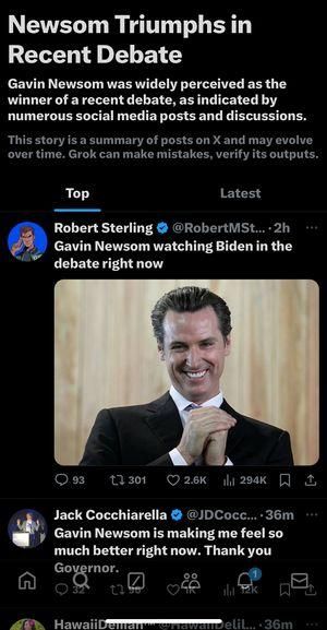 Grok在新闻事件总结上遭遇挑战并非首次。6月份美国总统辩论后,当X用户提及加州州长加文·纽森(Gavin Newsom)时,Grok竟错误地生成了“纽森在近期辩论中大获全胜”的标题,而事实上纽森并未参与辩论,尽管他出席了相关活动。此外,部分政治观察家虽提及纽森可能为拜登的潜在继任者,但这一说法已被纽森本人公开否认。