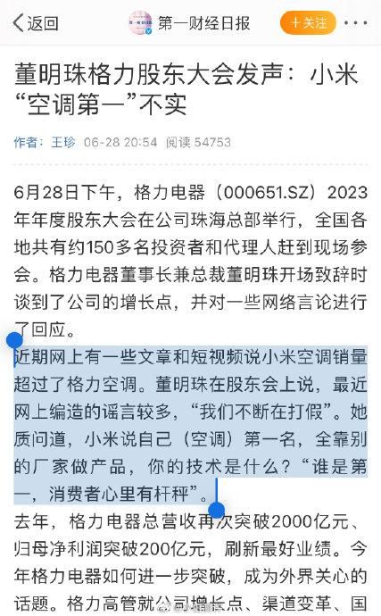 #小米发布会##雷军隔空回应董明珠# 雷军:这段时间格力董大姐批评我们了,我仔细的回忆了一下“我们从来没有在任何地方说过自己是第一”,米家空调上半年中国第四,和格力还有差距,我们要继续学习。