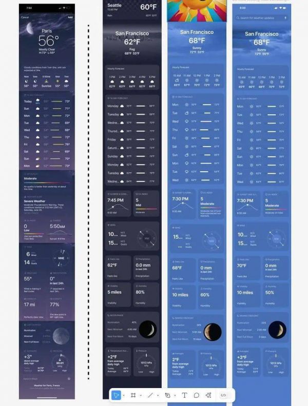这是用Make Designs创造出来的“天气应用”,结果出来基本上就是苹果天气应用(最左)的样子。