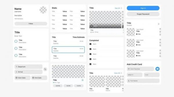 首先,Figma付费找人设计了两套设计系统(一套面向手机端应用,一套面向电脑端),其中包括了数百组可用于多样化设计的模块,同时也付费做了模块组合设计的示例。