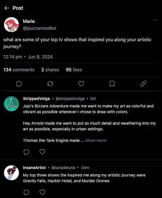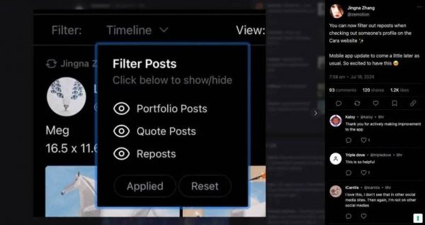 Cara除了可以展示作品,也可以发起讨论