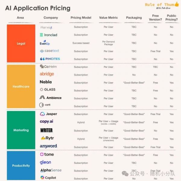 目前正处于 AI 应用的初期阶段。许多公司仍在寻求 PMF(即使它们已经融了很多钱),并试图证明市场需求。定价模型的创新很困难,因此最初并不是核心关注点。
