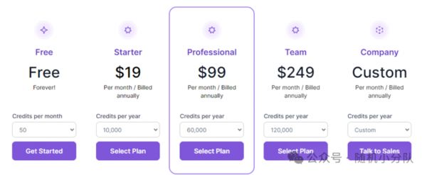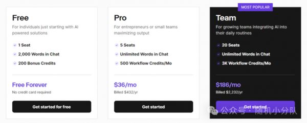 Copy.ai 的定价结合了订阅制和基于使用量的积分模式。