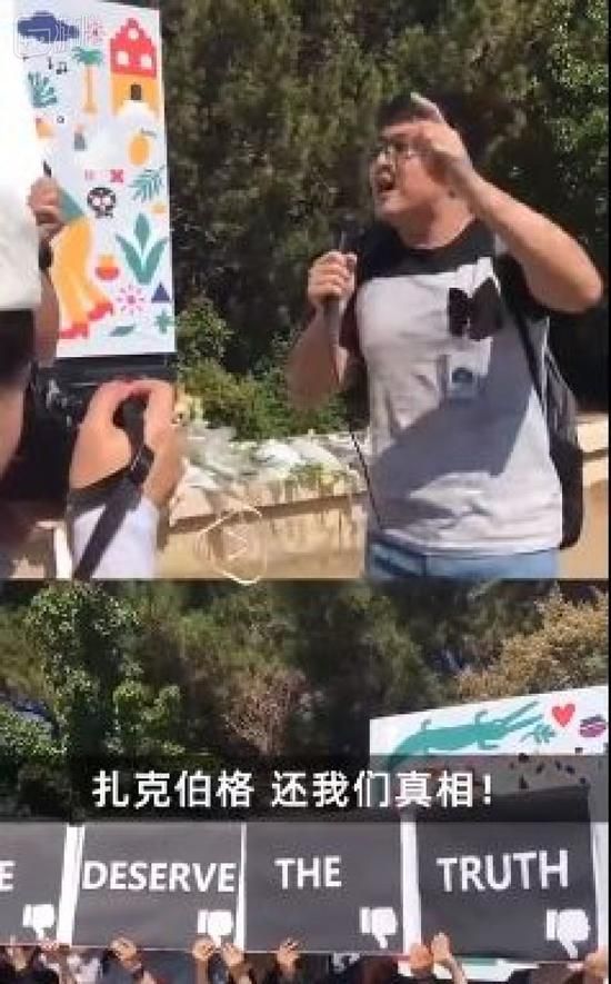 尹伊走出人群,换下了劳累的组织者。他觉得应该换一个更直接、更朴实一些的口号,于是带领着大家喊起“Give me the truth, Zuckerberg”(扎克伯格,给我们真相),“Chinese lives matter”(中国人的命也是命)。