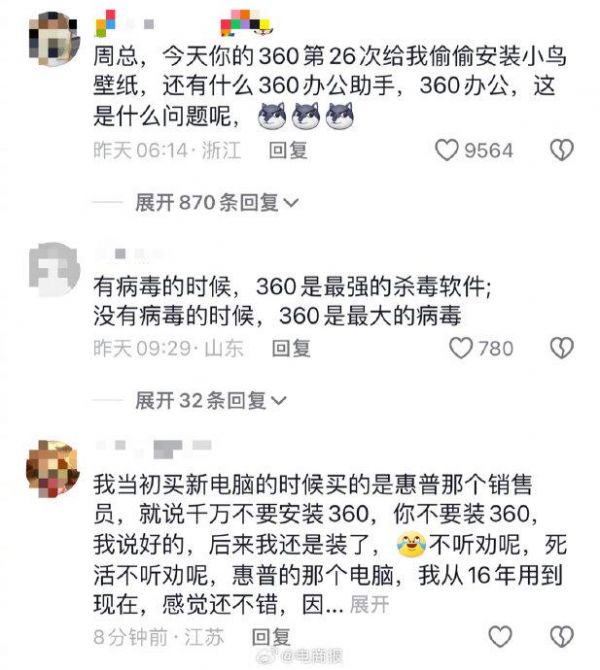 周鸿祎解释为什么国内免疫微软蓝屏:中国用户主要使用的360…