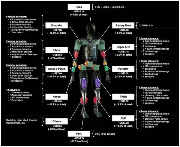(图:Morgan Stanley,《Humanoids:Optimus Prime》,Optimus机器人零部件拆解)