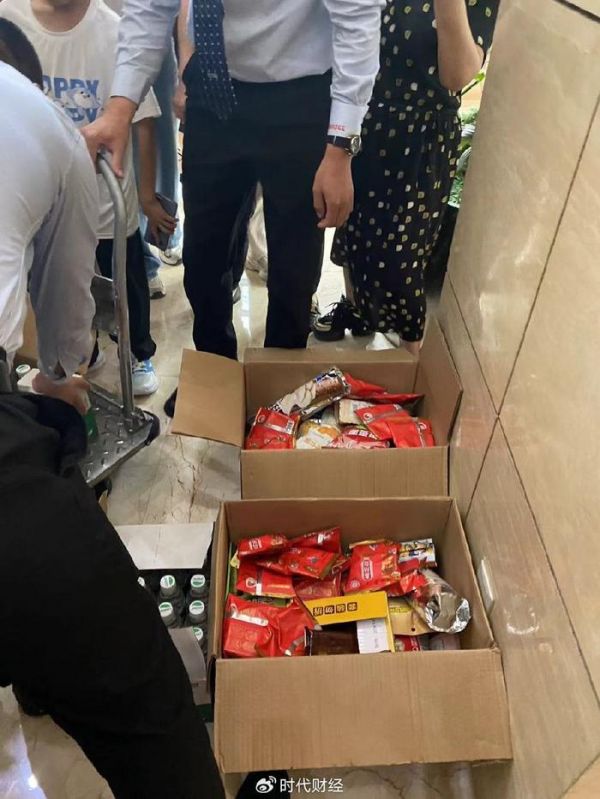 董宇辉团队工作人员为粉丝送上零食、矿泉水 时代财经/摄