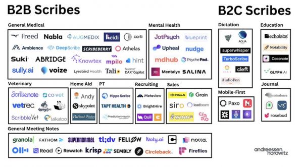 a16z 对那些使用 AI 助手,作为进入垂直软件领域的产品感到兴奋。这些语音数据往往是企业所有其他业务的“上游”数据,因此AI抄写员可以成为个人或公司的记录系统。