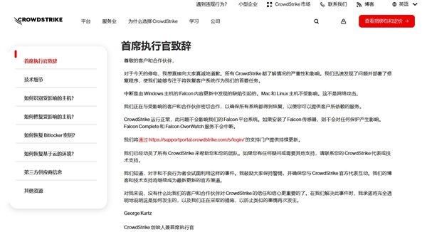 CrowdStrike创始人兼CEO George Kurtz发布致歉声明称,我们正在与受影响的客户和合作伙伴密切合作,以确保所有系统都得到恢复,以便您可以提供客户所依赖的服务。