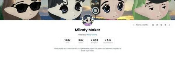 三个月后, Milady 成为地板价仅次于 Cryptopunks 和 BAYC 的 10 K PFP NFT 系列。