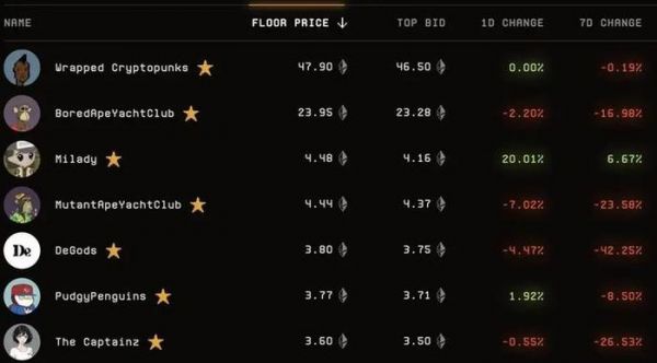 · Milady 在现存 10 K PFP NFT 系列中仍然排名前列(地板价在第 4 名前后);