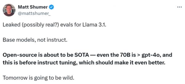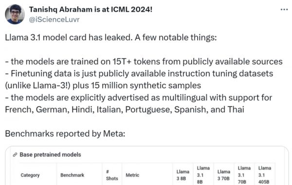 Llama 3.1终于现身了,不过出处却不是Meta官方。
