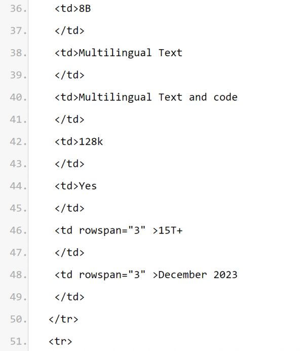 模型使用了公开来源的15T+tokens进行训练,预训练数据截止日期为2023年12月;