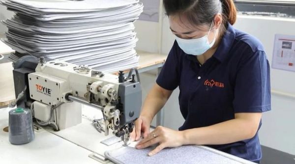 图|在昕科的生产车间,工人在缝制加热桌垫不懂用户,担心货卖不出?那就去市场上直接和用户交流,改变以往 " 自嗨 " 模式,用户想要什么我们生产什么。